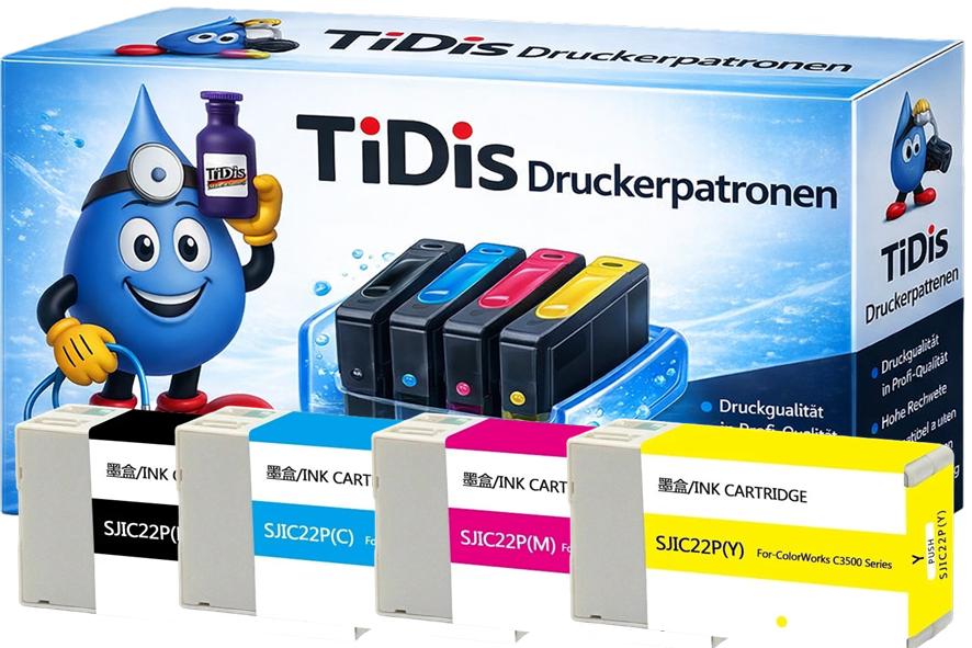 SJIC22PB-Y TiDis Ersatzdruckerpatronen Multipack je 1x BCMY mit je 32,5ml Inhalt – ersetzt C33S020601 -604