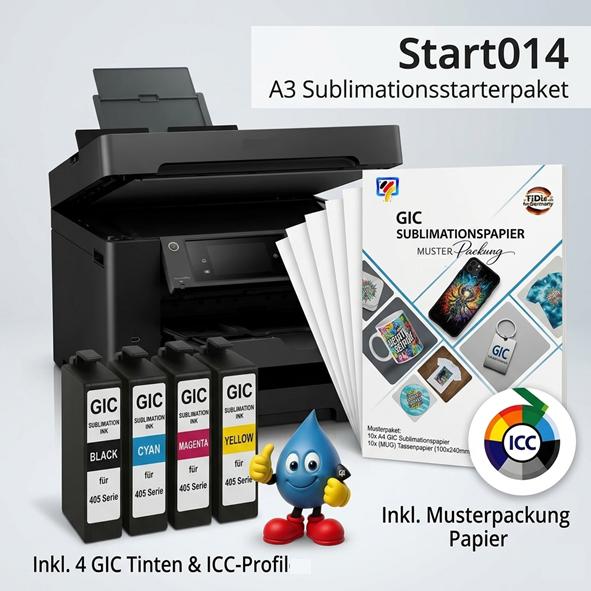 A3 Sublimations Starterpaket – Komplettset für große Drucke inkl. Drucker, Tinte & Zubehör | Start014